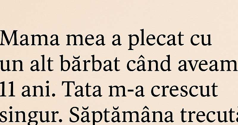 Am simțit cum îmi curg lacrimile fără să le pot opri. Toată ura, toată mândria mea s-au topit într-o secundă. Am înțeles că, deși a greșit, n-a încetat niciodată să mă iubească. Poate că nu știa cum s-o arate. Poate că viața i-a fost prea grea. Poate că s-a rușinat prea tare să se mai întoarcă.